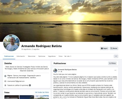 En su primera publicación de la página de Facebook, el Ministro de Ciencia, Tecnología y Medio Ambiente de Cuba, Armando Rodríguez Batista, escribió lo siguiente: "Hoy abro esta página. Y no es cualquier página. Es un espacio que quiero construir...